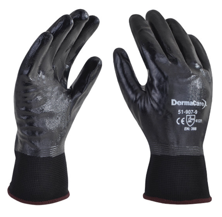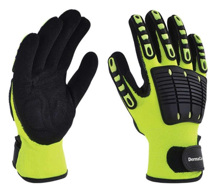 Guante verde con doble inmersión de pvc de 14” con forro interno de algodón, puño guantaleta, tiene un acabado áspero, lo cual mejora la manipulación de piezas húmedas o con presencia de grasas. Excelente resistencia a químicos, solventes, productos cortantes, abrasión y desgarre.»